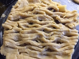 Roll out the remaining pastry and roll the lattice cutter over it. You'll see that the lines are broken by parts where the cutter doesn't cut through and the pastry stays joined together. I couldn't figure out initially what to do so had to watch a video on YouTube - carefully take each end of your pastry and pull apart and the lattice should open like a concertina!