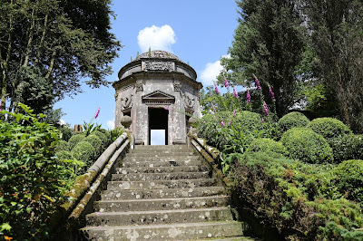 The Larmer Tree gardens have plenty of things to explore from pathways between hedges leading to statues, a pretty garden within a garden called the bride's quarter, an old stage dating from 1866, a dell (basically a pond with a beautiful view), a grotto an of course the roman temple where my husband I tied the knot. There's even a trail of fairy doors around the gardens for children to seek out.